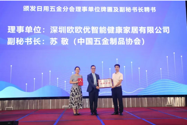 会上,增补深圳欧欧优智能健康家居有限公司为分会理事单位,聘任苏敬同志为分会第六届理事会副秘书长,并颁发牌匾和聘书。